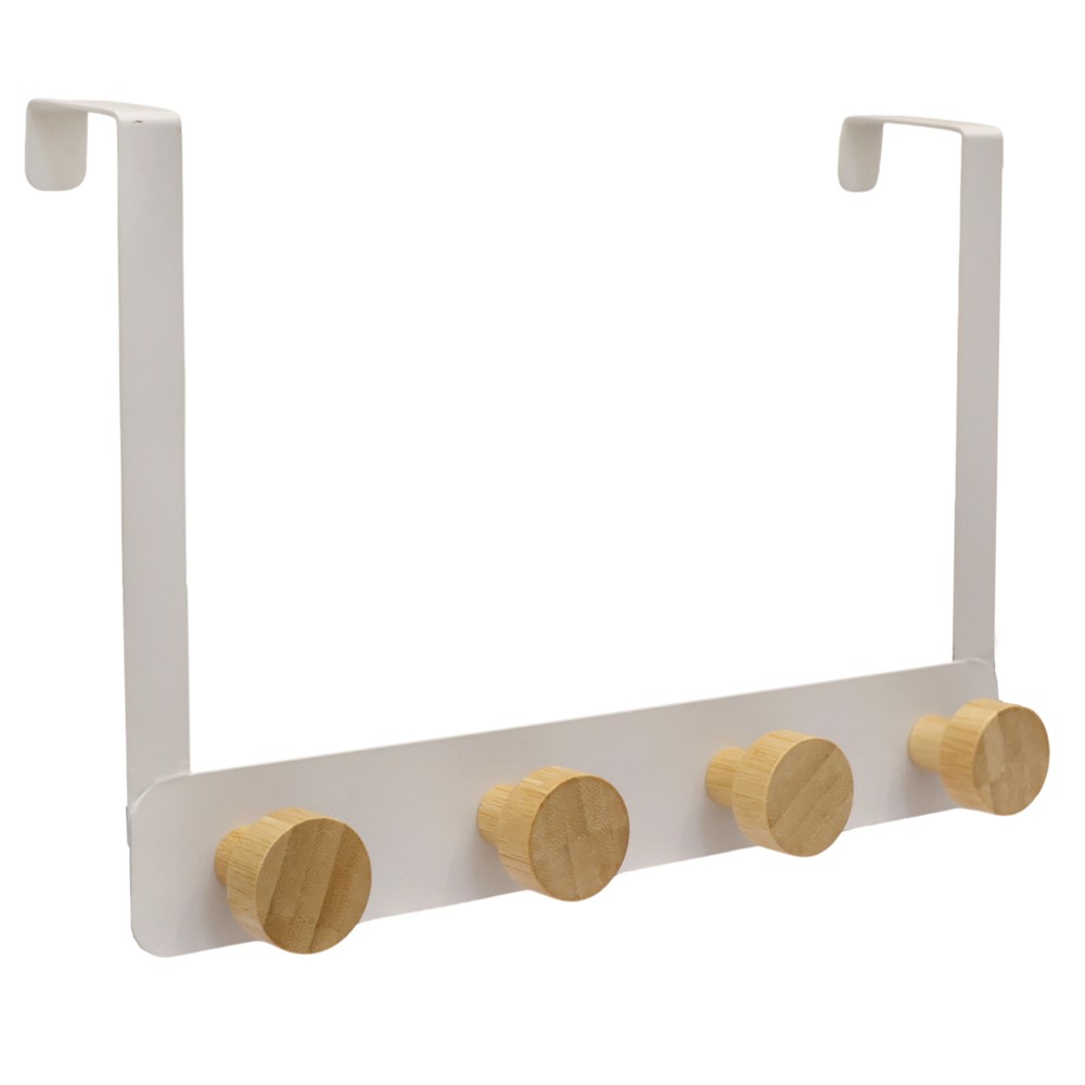 Multifunksional hanger, 4 hooks, metal/wood, white/brown, 26.5x18 cm