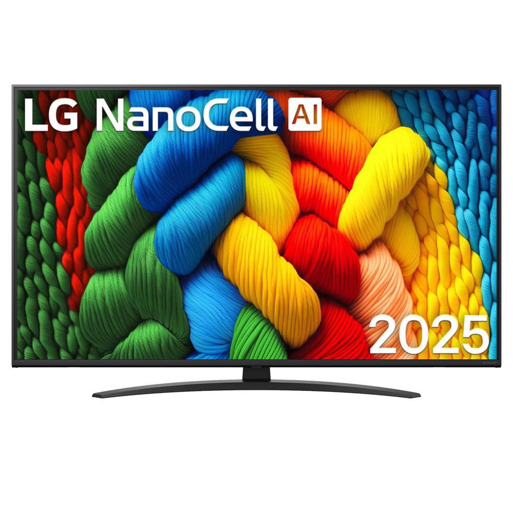 The LG 43NANO81A3A is a 43-inch television featuring a NanoCell display with Direct LED backlighting. This technology is designed to filter out impure colors, resulting in more accurate and vibrant images at a 4K UHD resolution. The television's internal processor utilizes features such as AI Picture Wizard and 4K Super Upscaling to analyze and optimize content for improved clarity. It supports multiple High Dynamic Range formats, including HDR10 and HLG, which enhance contrast and color detail in compatible media. This model operates on the webOS 25 platform, providing access to a range of streaming services and applications. Navigation is facilitated by the included AI Magic Remote, which incorporates voice control functionality. The audio system consists of a 2.0 channel speaker configuration with a total output of 20 watts. Sound processing features like AI Sound Pro and Clear Voice Pro are integrated to adjust audio output and improve dialogue intelligibility for various types of content. For connectivity, the television is equipped with three HDMI 2.1 ports, two USB 2.0 ports, an Ethernet port, and an optical audio output. It supports both Wi-Fi and Bluetooth 5.1 for wireless connections. For gaming, the inclusion of a dedicated Game Optimizer mode and Variable Refresh Rate (VRR) technology helps to minimize input lag and screen tearing. The unit can be placed on a stand or mounted to a wall using a standard VESA 200 x 200 mm interface.