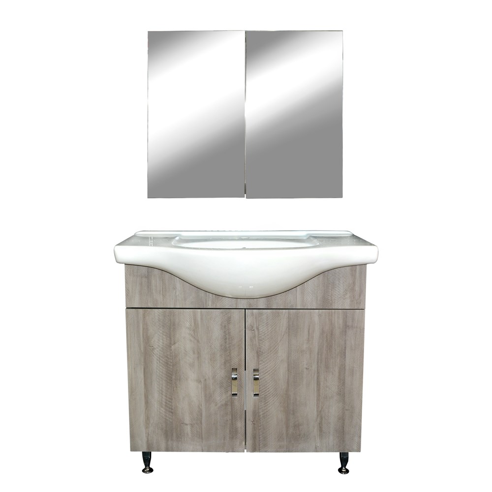 The complete set of bathroom furniture presents an elegant design that will rejuvenate your bathroom. The porcelain basin offers a stylish design easy to clean and durable surfaces for long-lasting beauty for medium and large spaces of your bathroom. The collections material is melamine which offers high-humidity resistance.This color can be easy combined with modern tiles of different monochrome colors.his is a collection that includes: basin, basin- cabinet, mirror mounted on shelf. All of the components are pre-assembled and ready-to-install in a quick and easy way. With this set you can remodel your bathroom anytime your space needs even more storage.