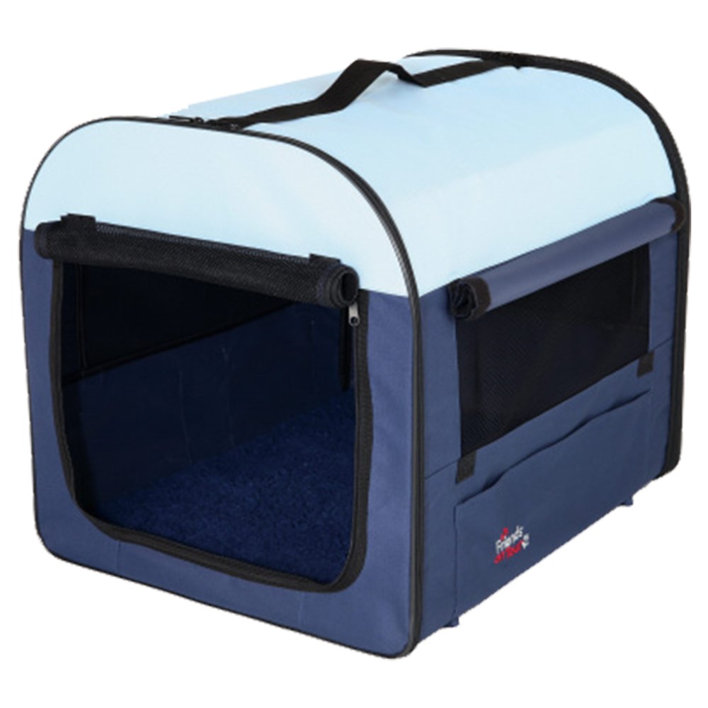 Transport carriage to keep your animal in the car in a safe place. It has a large interior space to ensure the comfort of animals. With a special design fits most luggage of each car. It is produced with first quality, strong and resistant materials. With anti slip slides for easy transport. With its large front door, along with side blinds, it ensures a good circulation of air inside the carrier, providing a proper ventilation. The front opening door has security closure.