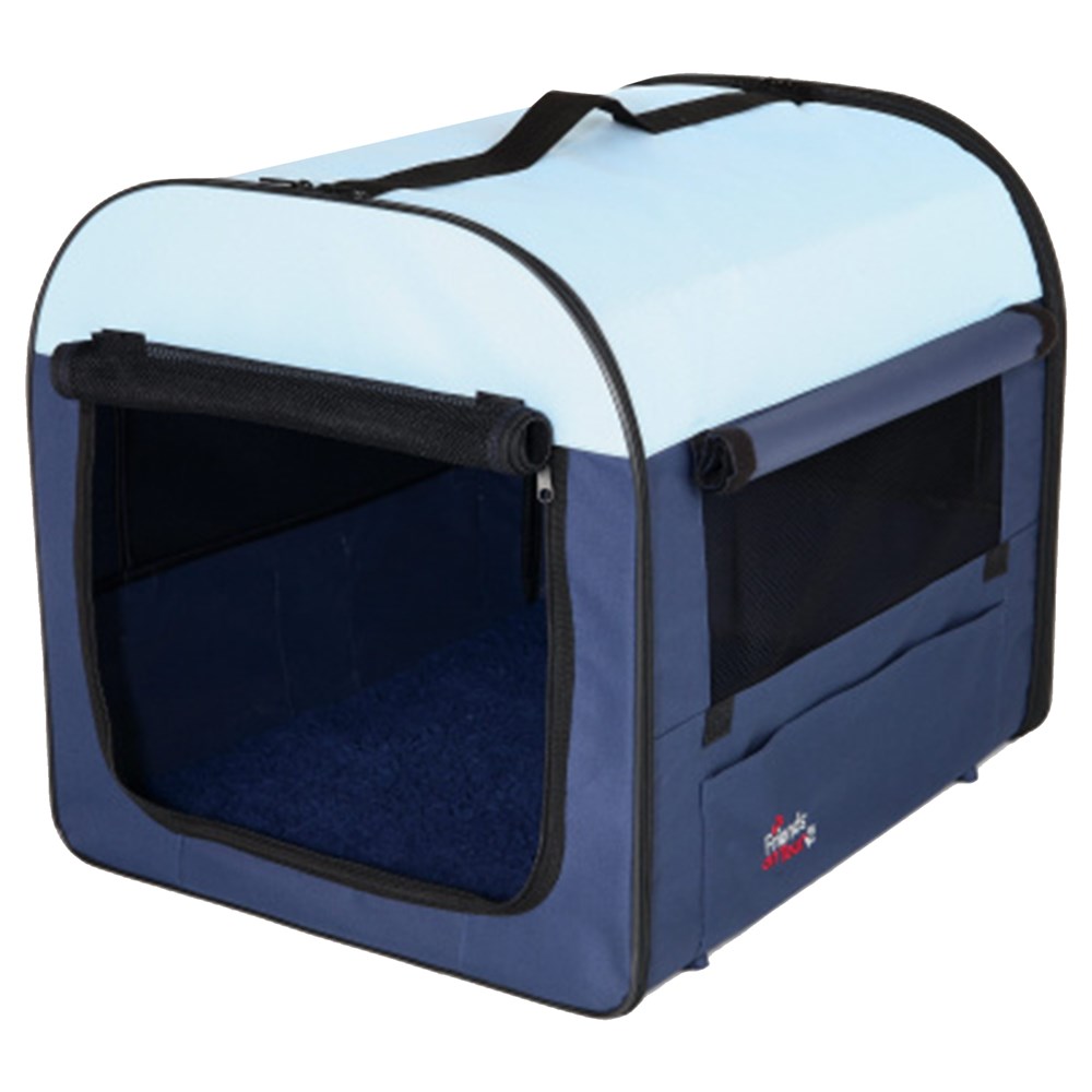 Transport carriage to keep your animal in the car in a safe place. It has a large interior space to ensure the comfort of animals. With a special design fits most luggage of each car. It is produced with first quality, strong and resistant materials. With anti slip slides for easy transport. With its large front door, along with side blinds, it ensures a good circulation of air inside the carrier, providing a proper ventilation. The front opening door has security closure.