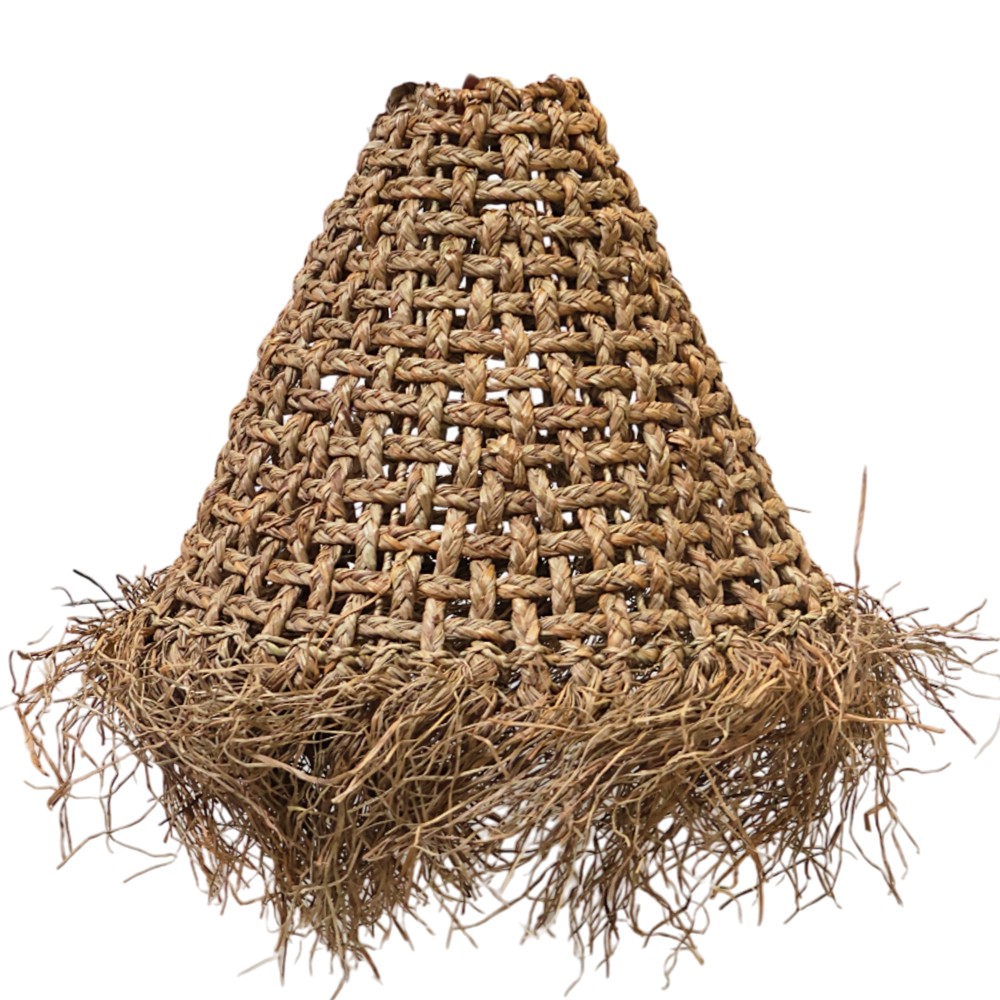 Pendant lamp with dimensions 40x40x40 cm, in Mendong color (a natural, light brown color with warm tones). Simple and elegant design, ideal for environments that require a calm and organic atmosphere. Perfect for small spaces such as living rooms, offices or kitchens with a natural and minimalist style.