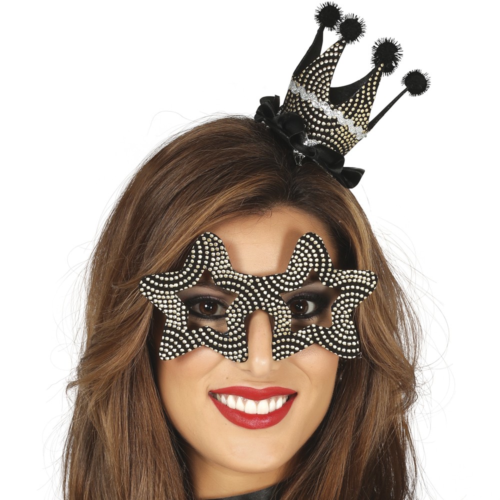 New Year set, which includes a hair clip in the shape of a crown and a pair of glasses in the shape of a star. With this set you will be ready to start the new year with a party.