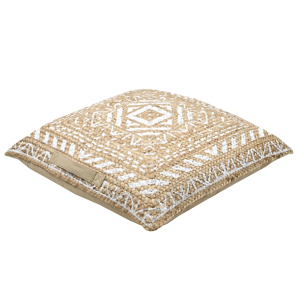 Nikaia decorative pillow, 50% cotton + 50% jute, beige with white, 60x60 cm