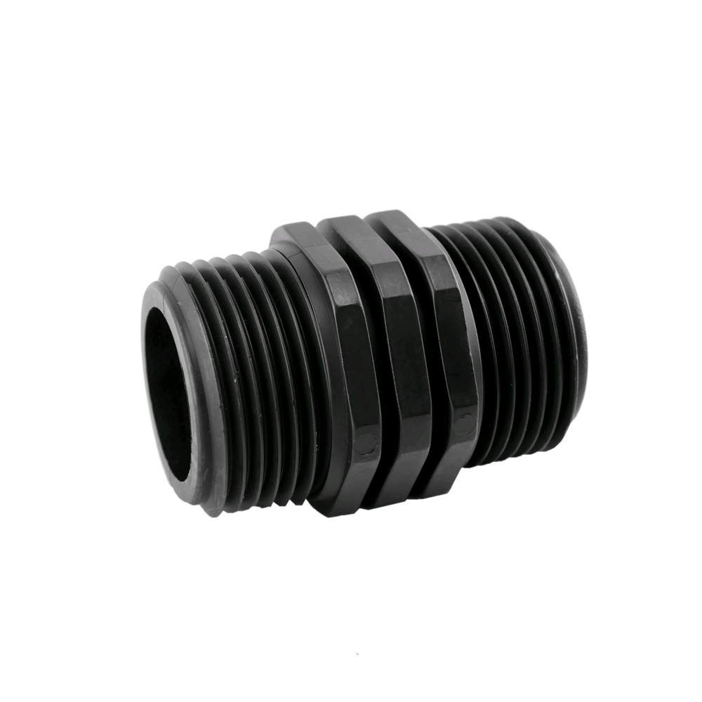 Nipple of PP 1" male. Used to installations water supply infrastructure lines, in irrigation and agricul, etc. Nipples with male fillet enables joining the network of pipes or different fitting threading through, for joining the fillet recommend tu use teflon. Manufactured with European standards, resistant to corrosive materials designed to withstand pressure up to 6 Bar.