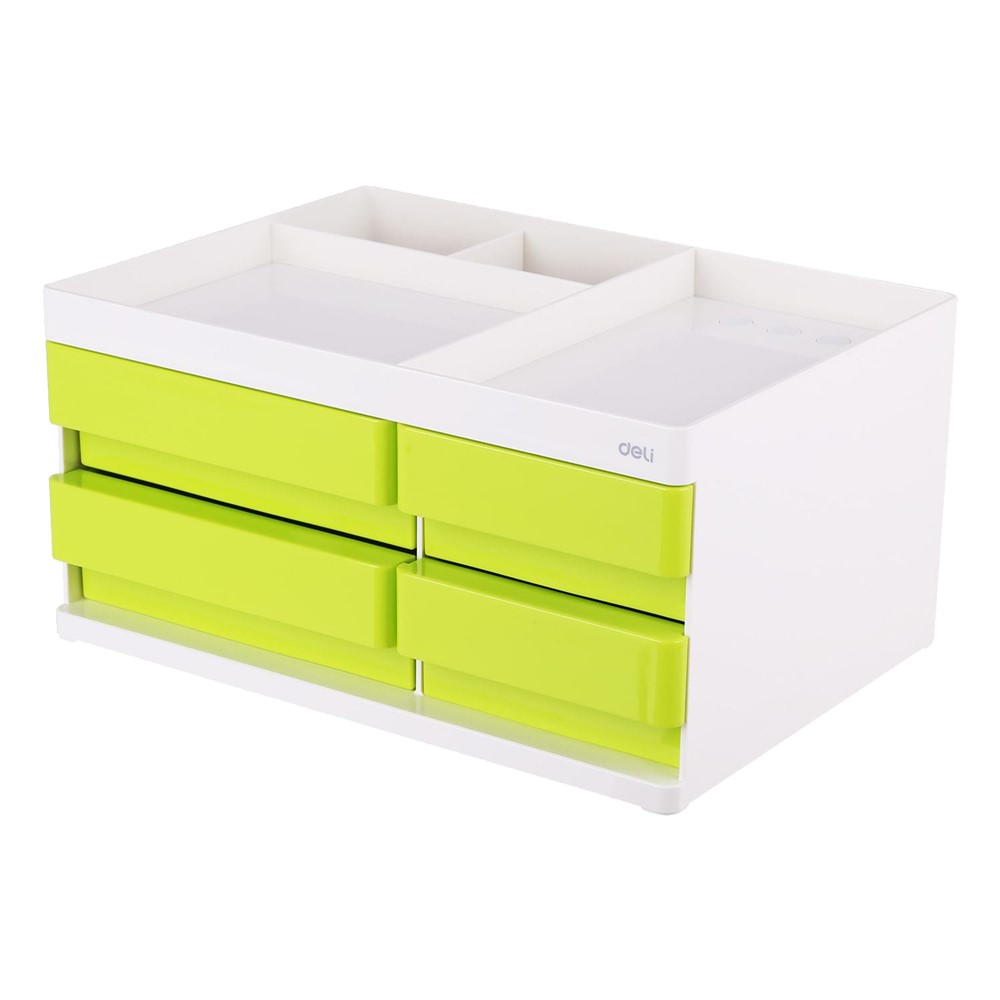 Office cabinet with 4 places for accessory holder, made of plastic material, in green color. Suitable for use in offices, schools, etc.