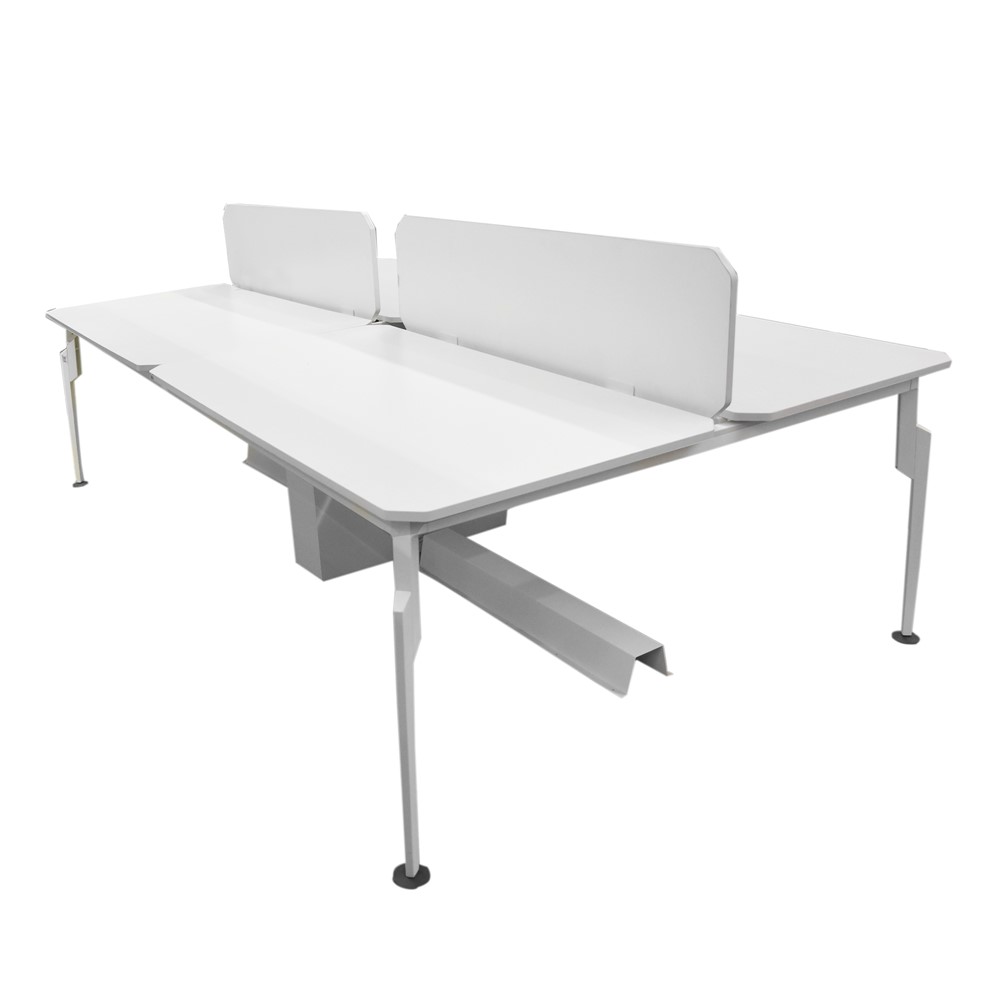 Office desk, aluminium frame (white), melamine tabletop, white, 280x155xH75 cm