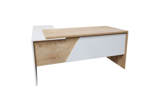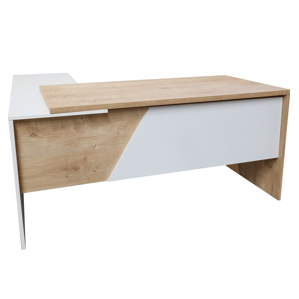 Office table, Edussa, melamine, white/oak, 160x150x75 cm
