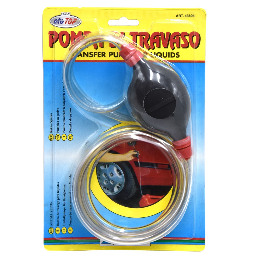Practical in use and built of hydrocarbon resistant plastics (Petroleum, gasoline, oil, etc.). With a length of 1.6 M, it enables the transport of fluids from one tank to another. The diameter of 6 mm of the tube, makes it possible to increase the pressure and pass at a high fluid speed. The pump can also be used for slightly acidic, corrosive solutions.
