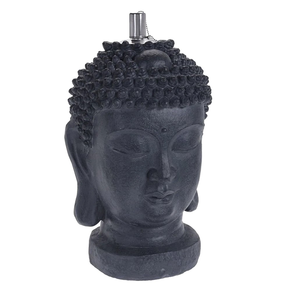 Modern oil lamp, Buddha head. The lamp will be an unusual decoration on the terrace, balcony or in the garden. It will introduce a substitute for an exotic climate. The lamp made of magnesium oxide is resistant to fire and changing weather conditions.