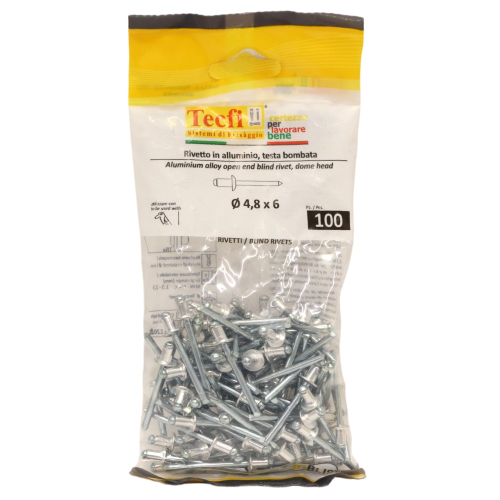 Open end dome head blind rivets, al/zp steel, Ø 4,8x6mm, Bag 100