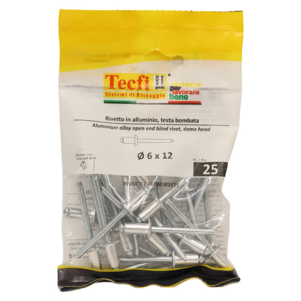 Open end dome head blind rivets, al/zp steel, Ø 6x12mm, Bag 25