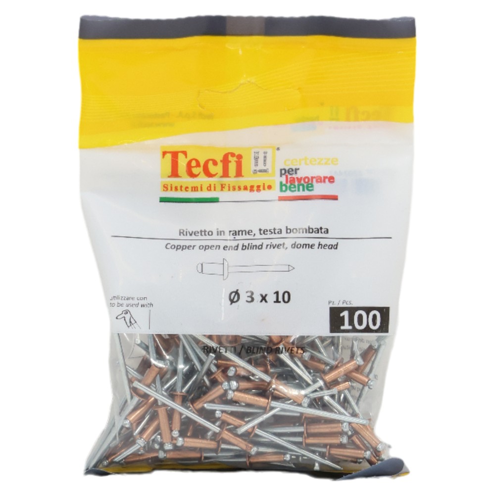 You're reviewing:Open end dome head blind rivets, copper/zp steel, Ø 3x10mm, Bag 100