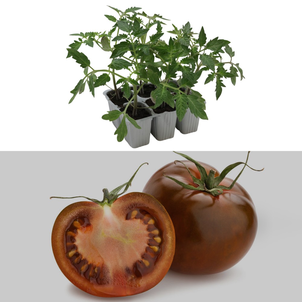 Organic Italian black tomato seedlings, nero di crimea kakao pack 6