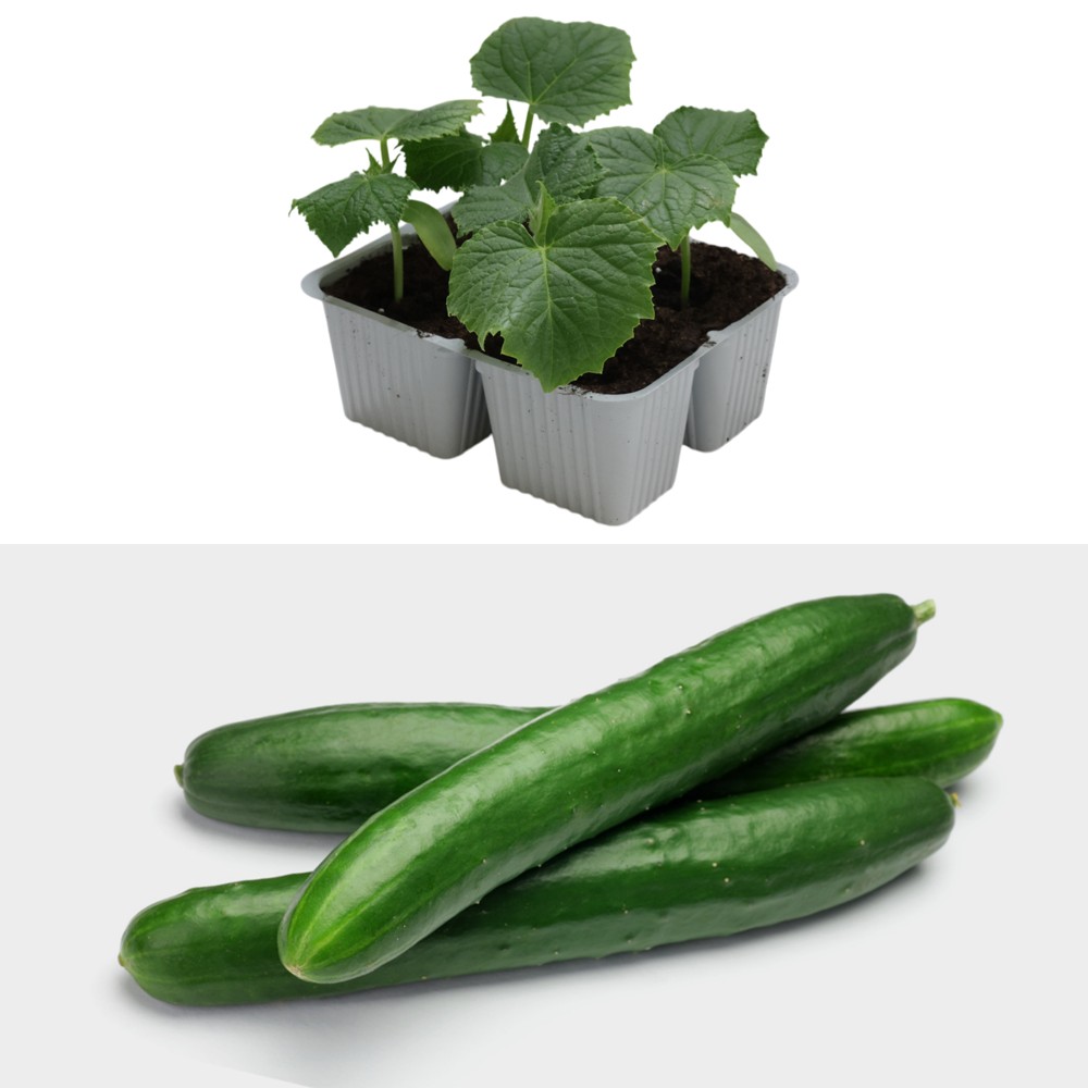 Organic Italian tall cucumber seedlings, lungo burpleess pack 4