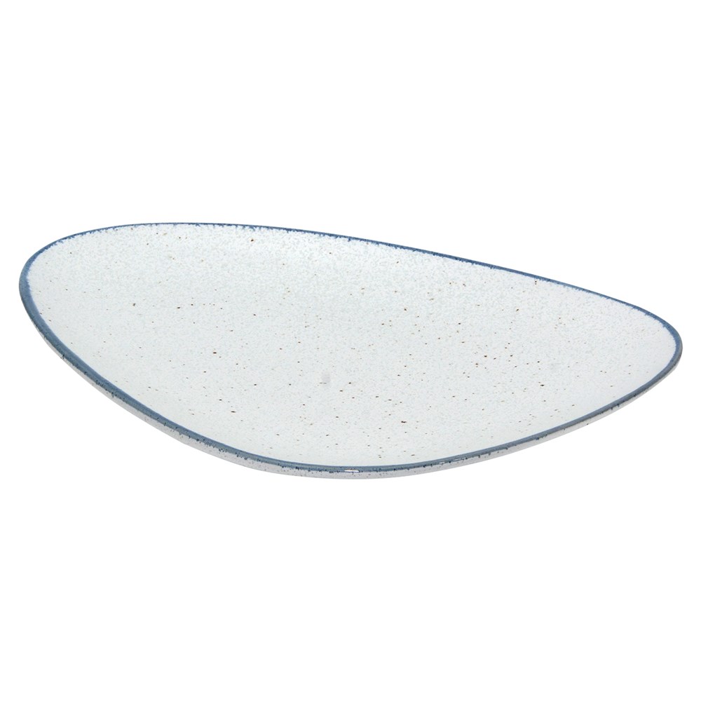 Organica Mare triangular plate, porcelain, white with blue contours, 28 x 20.5cm