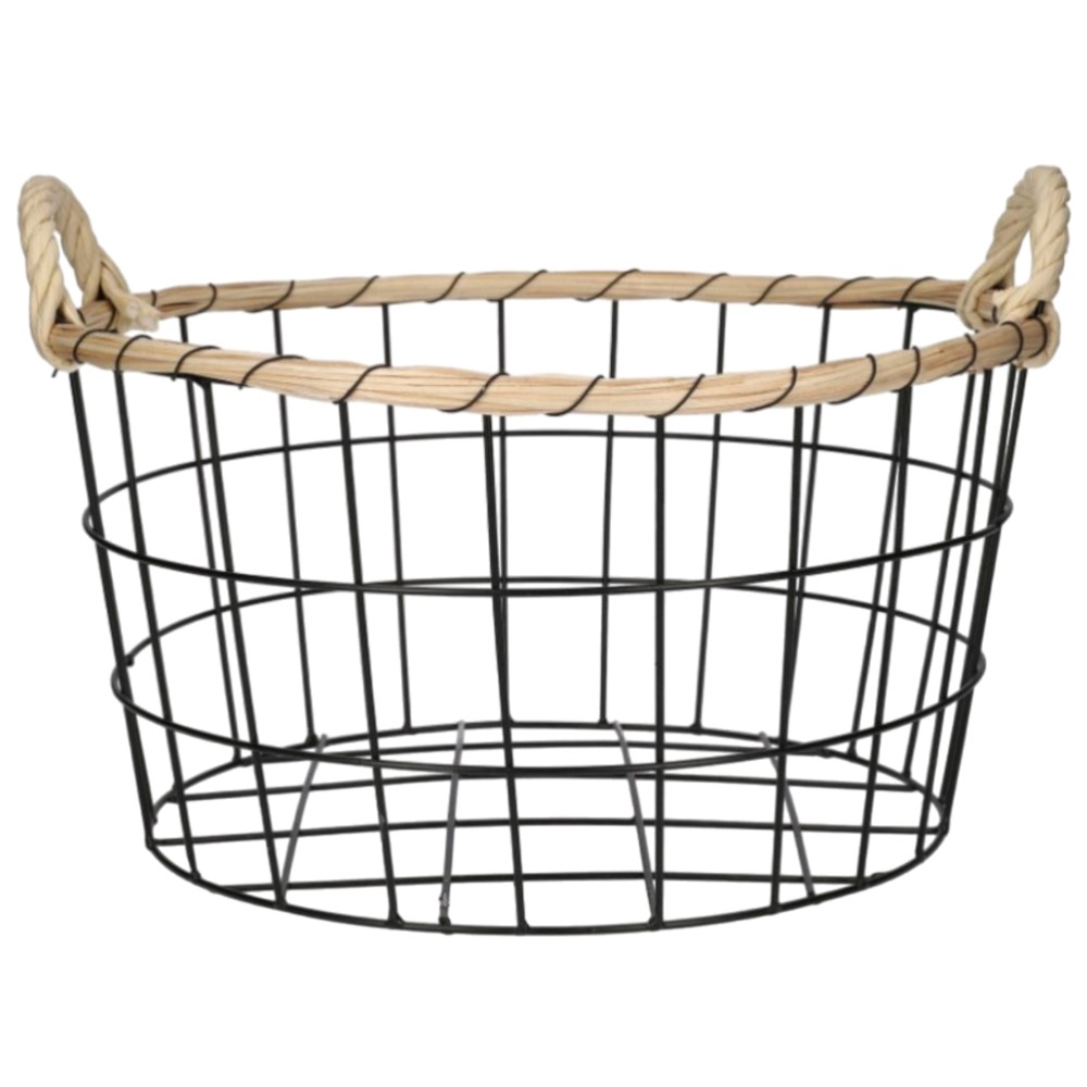 Organization basket, metal/bamboo, black, L-35.5xH18.5 cm