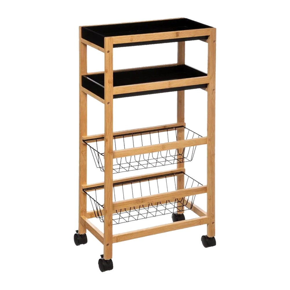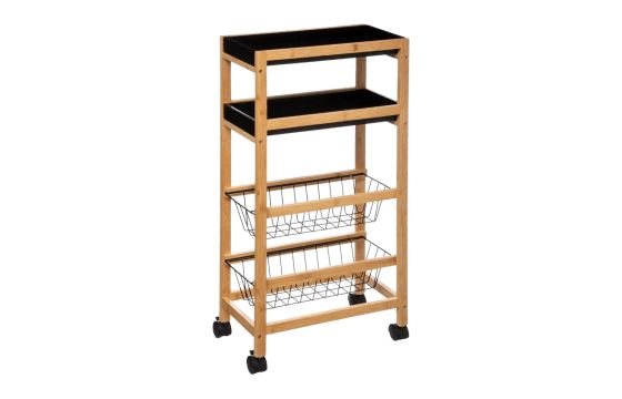 Organization shelf, with wheels, 2 metal baskets, bamboo, brown/black, 40x22xH83cm