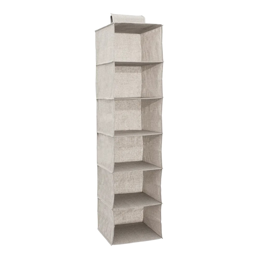A wide textile clothing rack with 6 compartments for clothes will create additional space in your wardrobe. The clothes storage organizer will increase the storage space by creating additional shelves. Made from durable polyester fabric, this organizer will be your perfect solution.