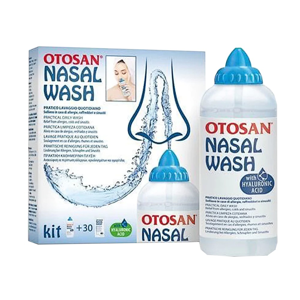 favors mucociliary cleaning; Fill the bottle with warm drinking water at a temperature of 35-40°C, up to the line indicating the level of 240 ml. Place one or two sachets: isotonic or hypertonic solution. Shake the bottle until the solution is completely dissolved in the water.