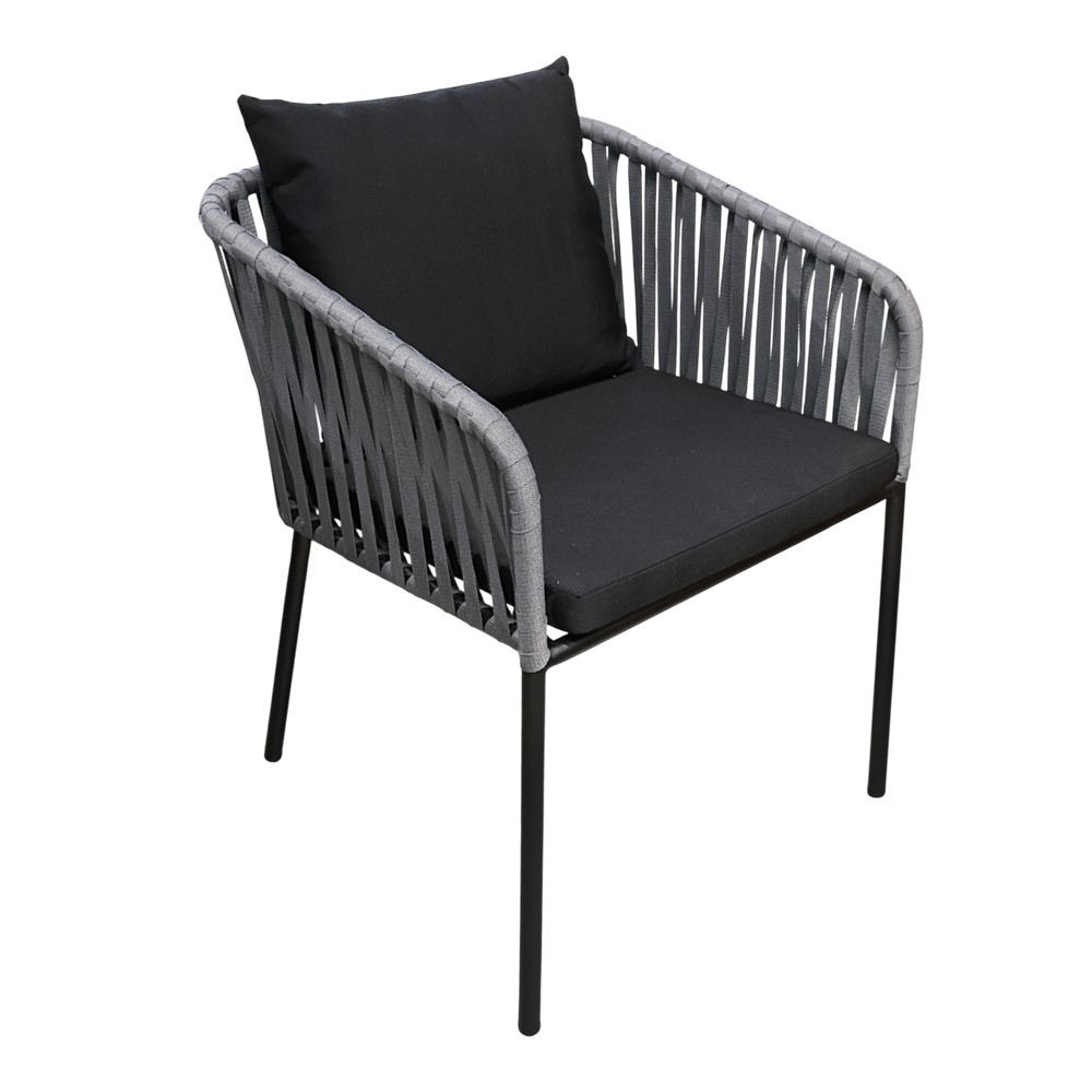 Outdoor chair, metal, anthracite structure, black slats, anthracite weave, 59.5x59.5xH77 cm