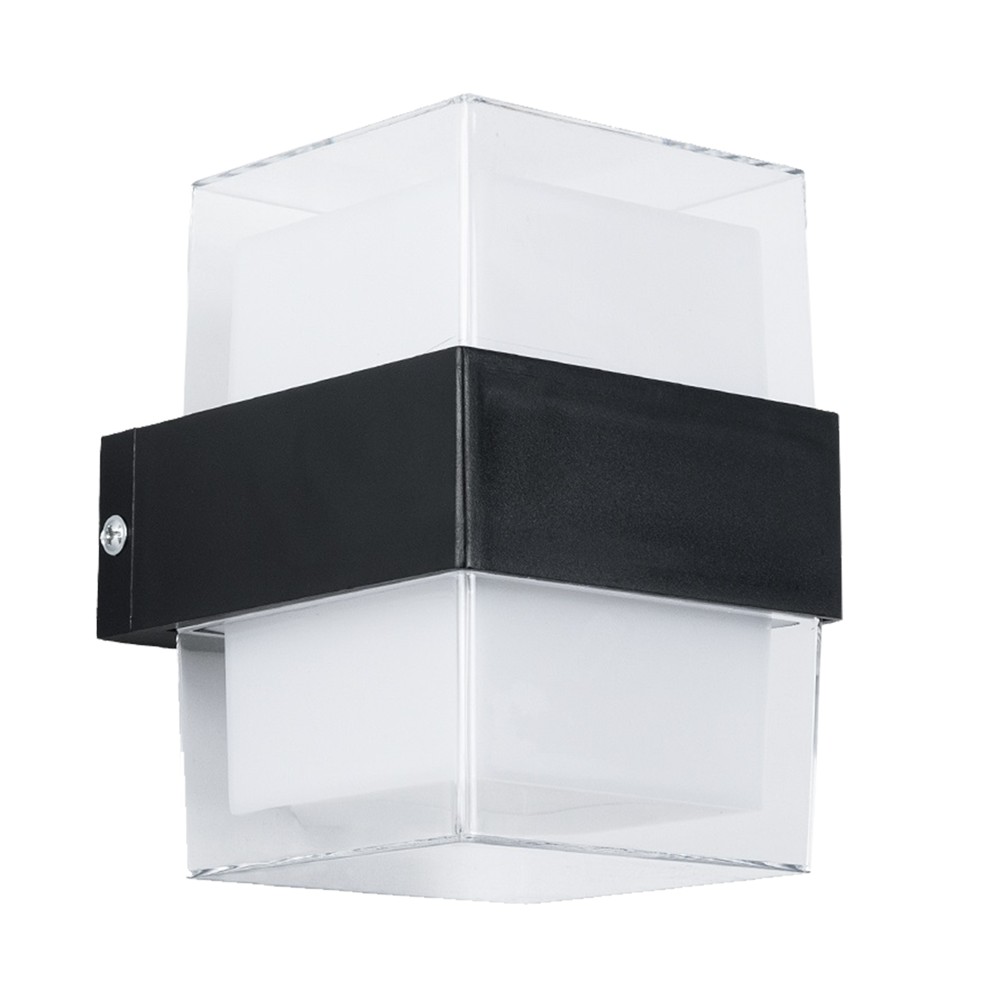 Outdoor LED wall light with 10W power and 3000K light color. It measures 11 × 11 × 9 cm, is IP65 certified for water and dust protection, and is made of aluminum with a black finish, offering durable lighting and modern design for outdoor environments.