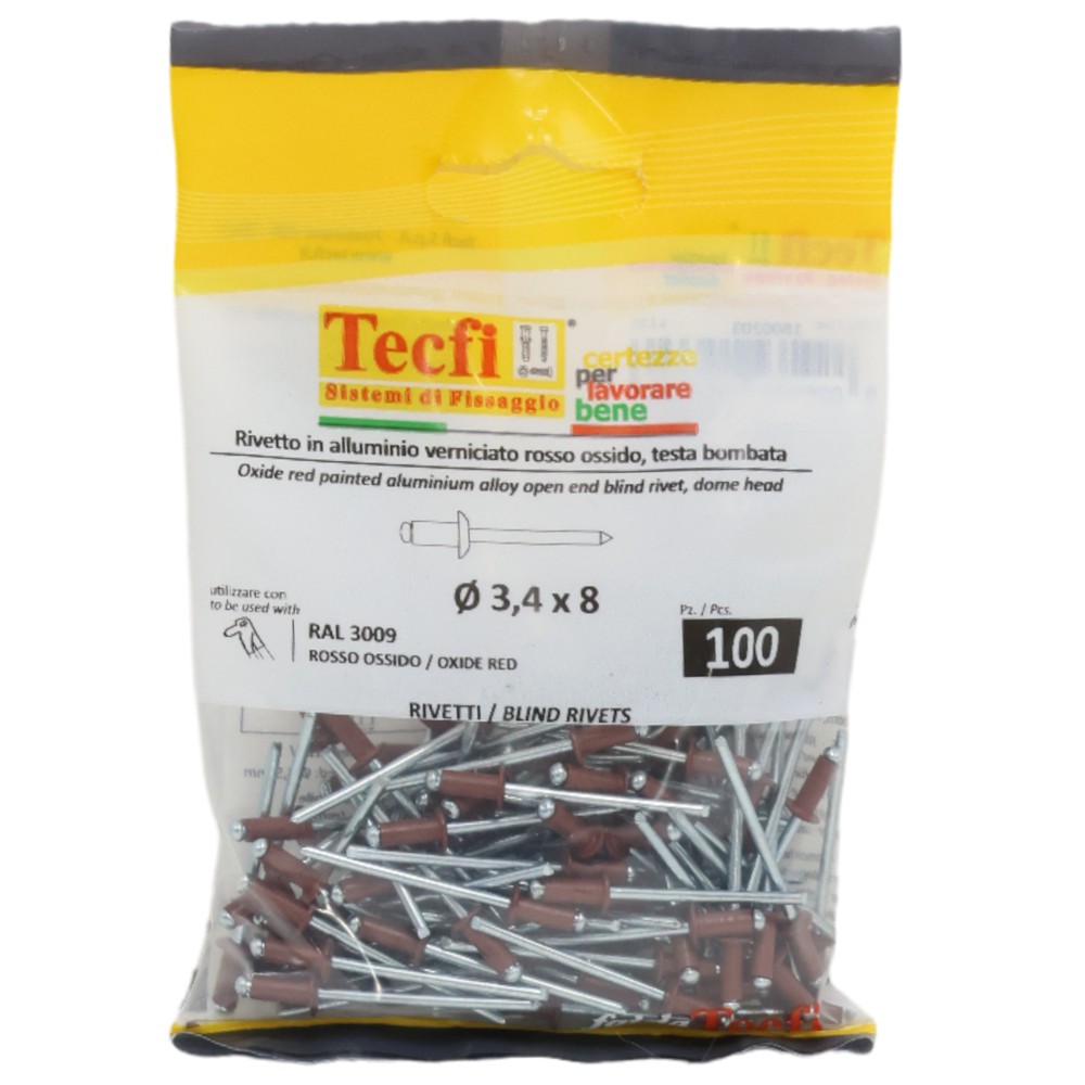 oxide red dome blind rivets, al/zp steel RAL 3009 , Ø 3,4x8mm, Bag 100