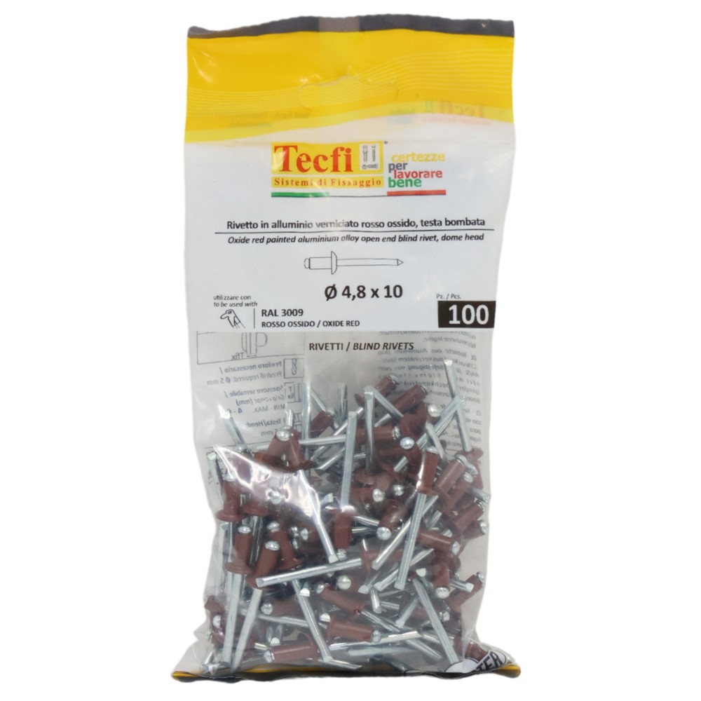 oxide red dome blind rivets, al/zp steel RAL 3009 , Ø 4,8x10mm, Bag 100