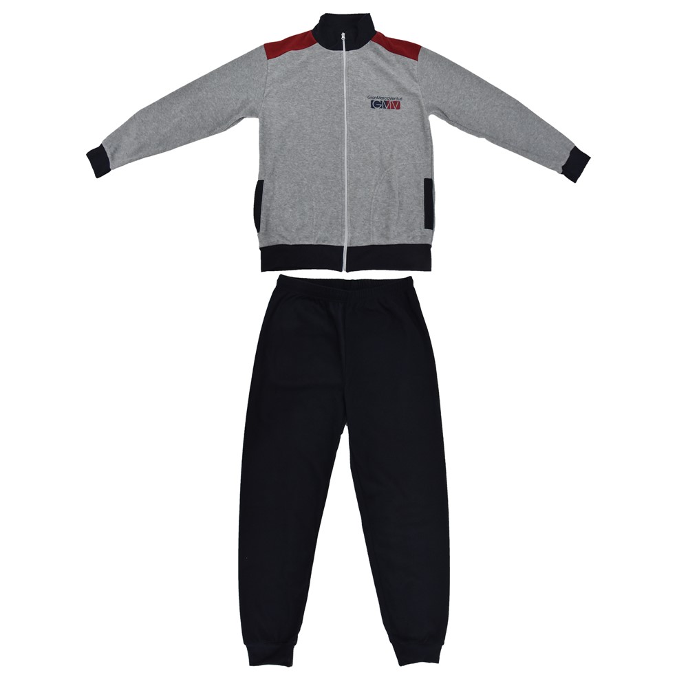 Men's pajamas, made of 65% polyester and 35% cotton, with hypoallergenic and antibacterial properties, which do not cause skin irritation, absorb excess moisture, are hygienic and have regulating properties of body temperature and heart rate. The pajamas include a round-necked, long-sleeved blouse, and a pair of long-sleeved pants.