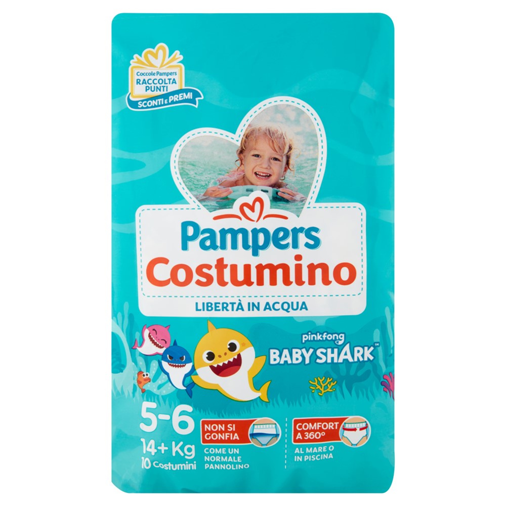 Costumino is the new Pampers line designed for your baby's baths. Ideal for the sea or the pool, it can be worn like a swimsuit and is easily removed thanks to the side opening. In addition, its double barrier reduces the risk of leaks and, unlike a normal nappy, Costumino does not swell in water.
