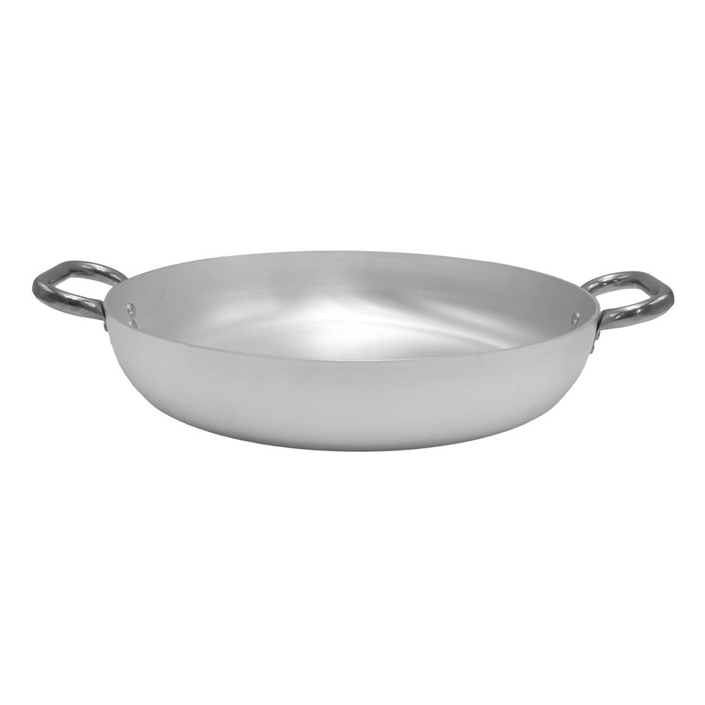 This professional frying pan from Agnelli is designed for large-quantity cooking and intensive use in both home and professional kitchens. Made from durable aluminum, it ensures fast and even heating of the cooking surface, guaranteeing consistent and efficient results every time. With a diameter of 36 cm and a height of 7 cm, the pan provides a wide cooking surface, ideal for sautéing, frying, preparing meat, fish, vegetables, or large-volume dishes. The ergonomic double handles allow for a secure grip and easy handling, even when the pan is fully loaded. A practical and functional pan—strong, reliable, and perfect for kitchens that demand high quality and intensive use.