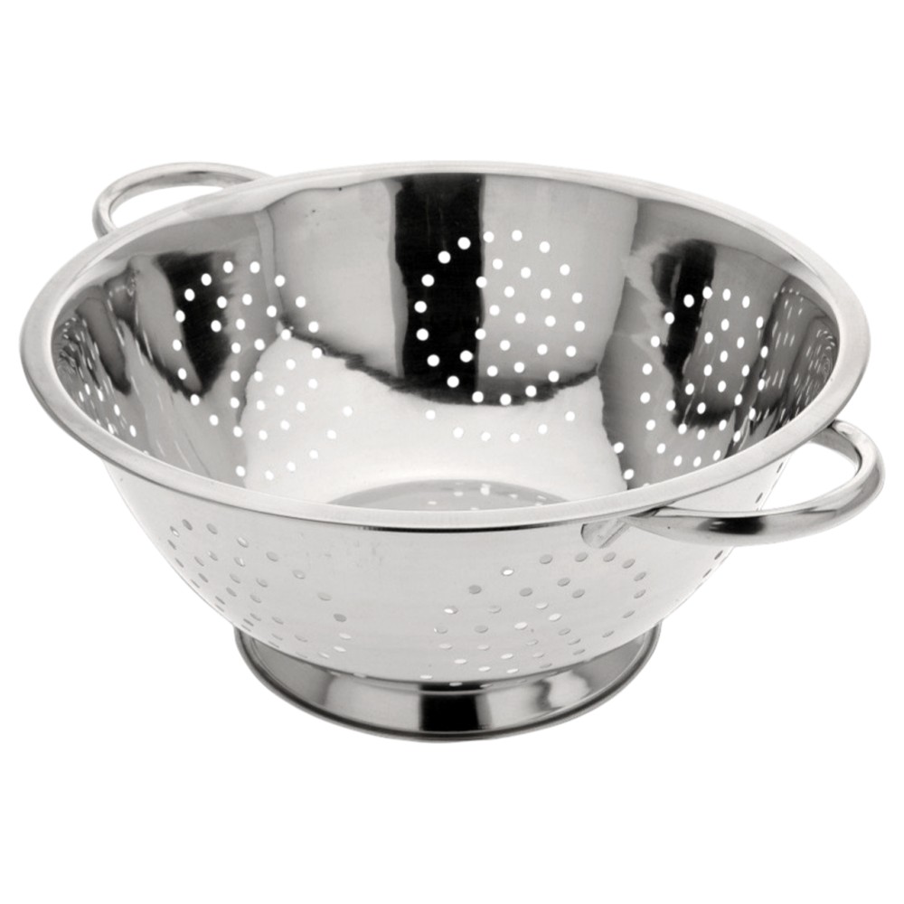 This stainless steel pasta colander is the ideal tool for draining pasta, vegetables or other foods easily and efficiently. With a diameter of 24 cm and a height of 10 cm, it offers sufficient capacity for family or professional use. Made of quality stainless steel in silver color, it guarantees durability, longevity and easy cleaning. Its practical design ensures fast and complete draining, thanks to the numerous perforations on the surface.