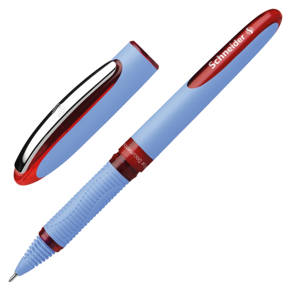 Rollerball with hybrid needle tip for smooth writing. Line width approx. 0.5 mm, red ink, waterproof according to the ISO 14145-2 ink standard. The innovative Super-Flow system guarantees a consistent ink flow from start to finish. The large ink tank has a level indicator. The ink does not dry out even if the cap is removed for 2-3 days. The One Hybrid N has a high-quality metal clip and an ergonomically rubberized surface that provides a secure hold for relaxed writing.