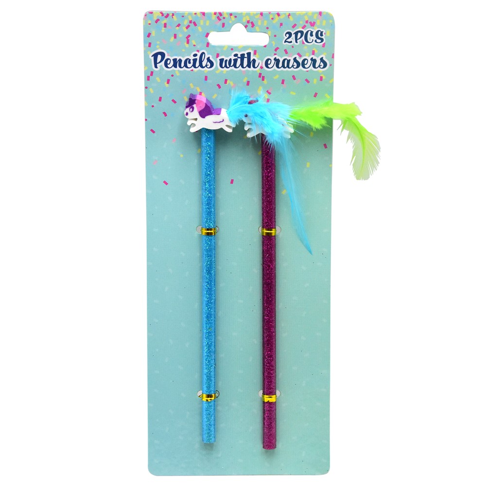 Lead pencil with feather decor. The pencils are in a set of 2 pieces made of wooden material.