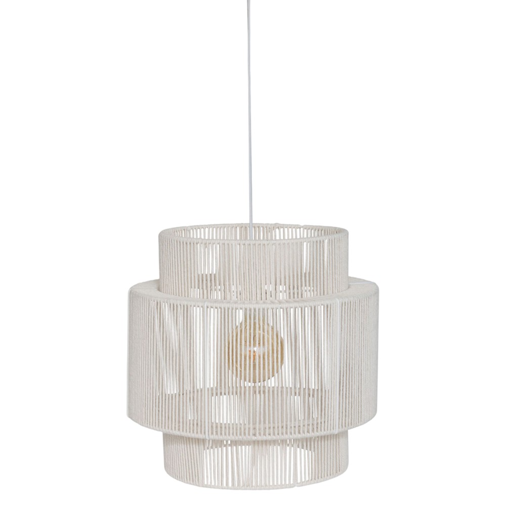 Pendant lamp with a diameter of 38 cm, equipped with an E27 lamp holder. The white textile lampshade provides soft and diffused lighting, creating a warm and elegant atmosphere, ideal for a dining room, living room or other interior spaces.