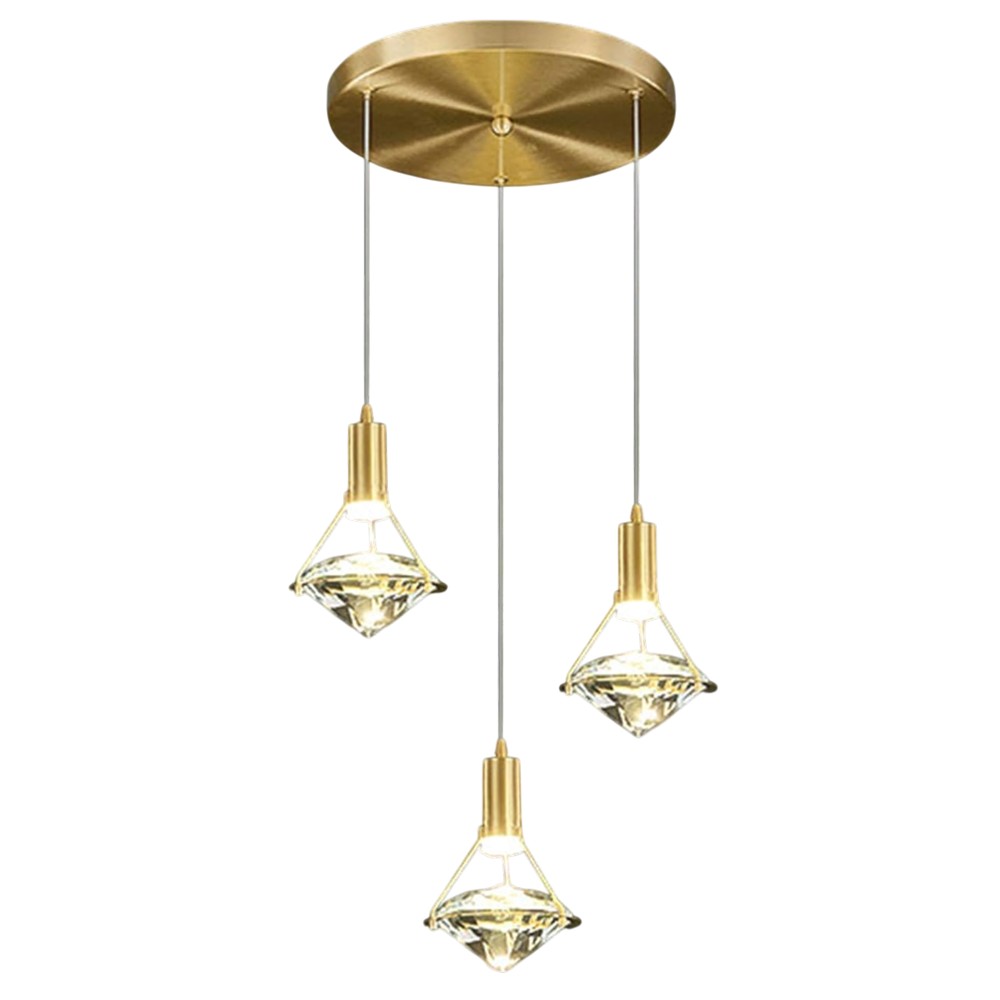 Pendant light with 3 GU10 bulbs, 56 cm long. Made of metal and crystal with a gold finish, it offers decorative lighting and elegant design for modern environments.