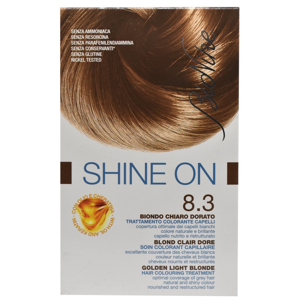 Permanent hair dye, 8.3 Golden Light Blonde, Shine On, BioNike, 50 + 75 ml