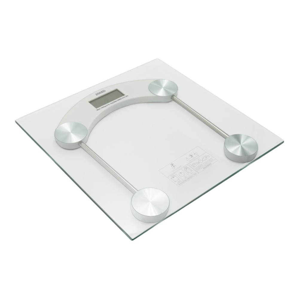 Personal digital scale "Theros" manufactured with transparent tempered glass surface and chrome metal structure. With its modern appearance, this scale will not only be practical but also aesthetic. Equipped with LCD display for weight display. Battery powered. Dimensions, length : 30 cm, width : 30 cm.