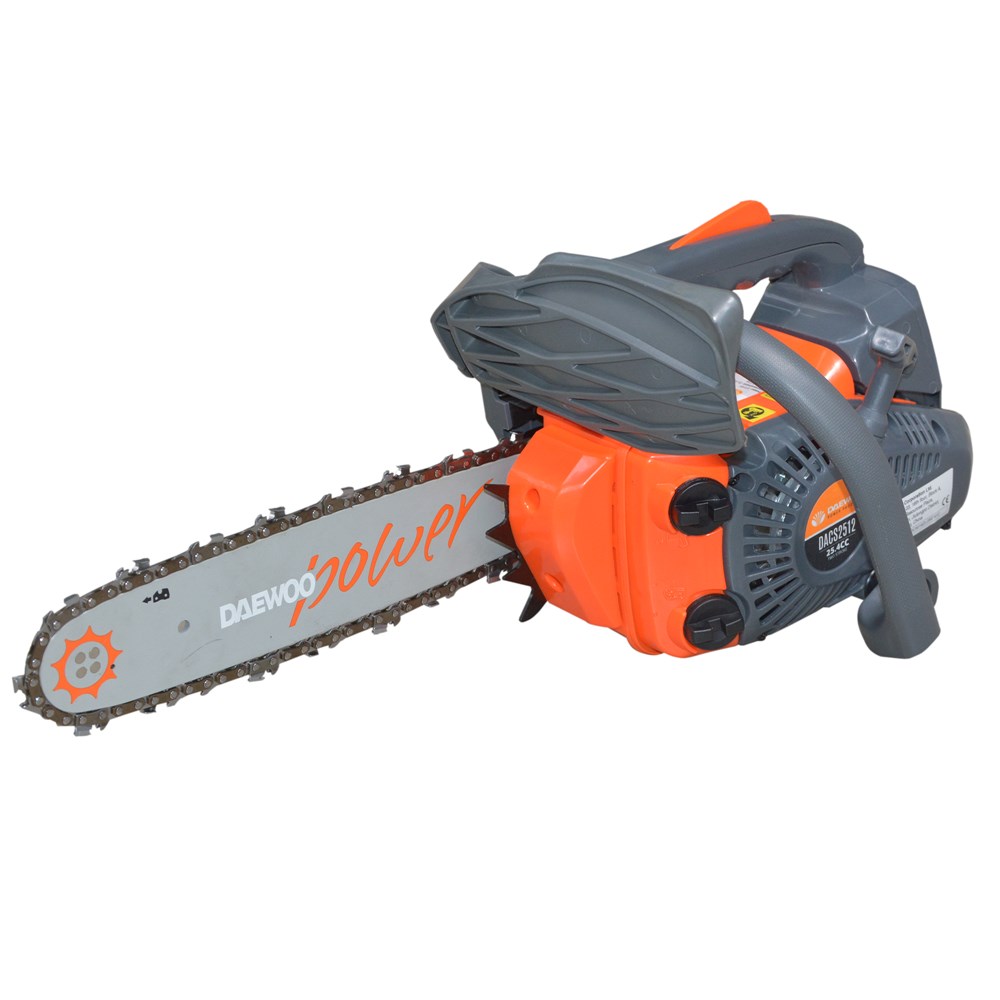 Chainsaw 0.9kw, 25cc - 2 stroke gasoline motor, ideal for branch and tree cutting, fulfiling all your need. Equipped with an automatic oiler that helps keeps the chain lubricated. With chain register tensioning and strain. This Chainsaw is equipped with 25 cm bar and chain, which helps in easy and fast cutting. The upper handle is equipped with anti-vibration system, to reduce the operator fatigue