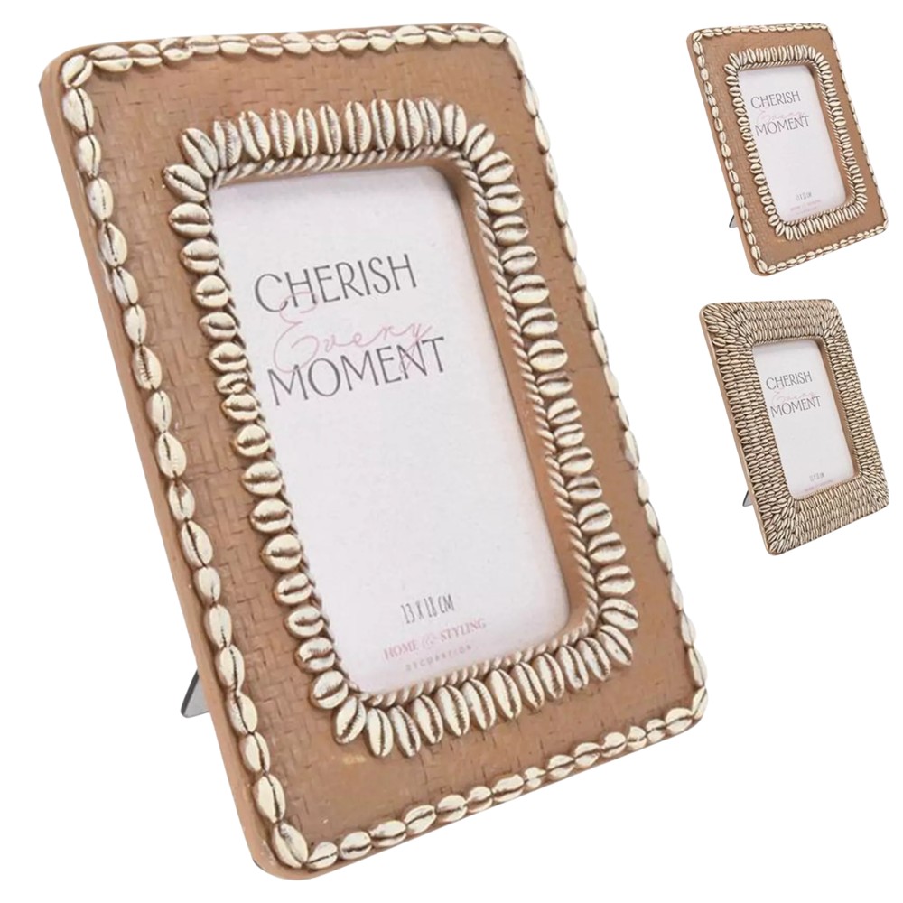 A unique frame that will add a finishing touch to your decor that will amaze anyone. With natural materials like shells that bring the freshness of the beach at any time. Its frame is made of polyresin and has a pleasant color of beige and brown shades. A decorative and functional object that is an extra detail for the compositions that you will create. Your photos will look even more beautiful thanks to this frame that has special elements in its shape. The shells are a detail that makes the difference and that will become the key point of your decorations.