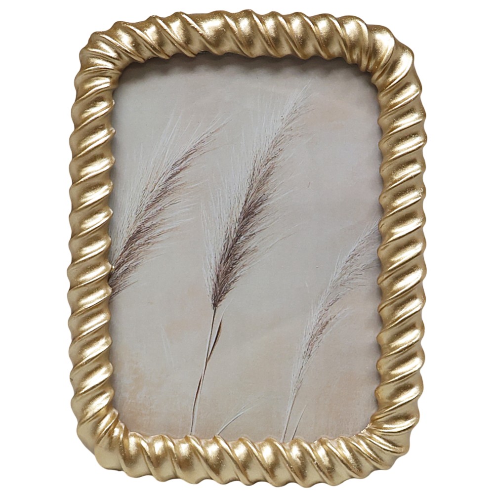 Gold-colored polyresin photo frame with dimensions 15xH21 cm, an elegant and refined accessory that gives your memories a special shine. Its gold-toned surface reflects light softly, giving photos a sense of luxury and warmth. The classic shape and simple design make this frame suitable for any environment, from modern homes to traditional spaces. Lightweight and durable, it protects and highlights every precious moment, turning every photo into a personal and emotional work of art. A decorative detail that brings elegance and shine to any room, keeping your memories always close.