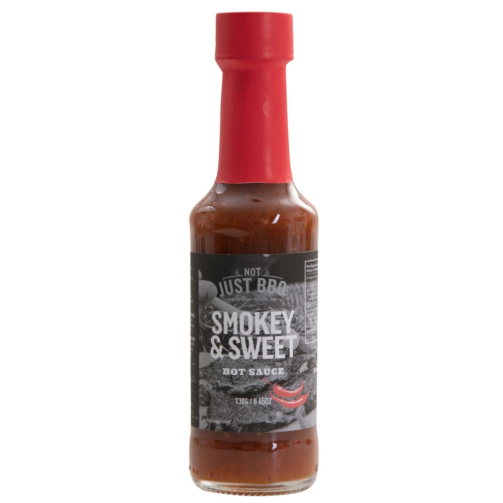 Smokey & Sweet spicy sauce, in a package of 130 gr. It contains sugar, red pepper, brine, smoked peppers, garlic, lemon juice, coriander, smoked chilies, salt, smoked red pepper. This mixture is perfect for flavoring hamburgers or hot dogs. Also for chicken wings, red meat and pork.