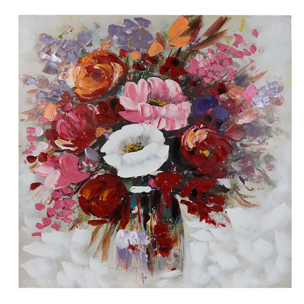 Decorate your walls with the painting "Flower bouquet", a colorful work on canvas measuring 80x80 cm that brings the energy and beauty of nature to your space. This vibrant composition, rich in bright shades, captures the moment of flowers blooming, creating an atmosphere of freshness and vitality. With delicate brushstrokes and harmonious contrasts, this painting invites the viewer to stop and experience the emotions conveyed by each petal and shade, turning any environment into an oasis of colors and sensations