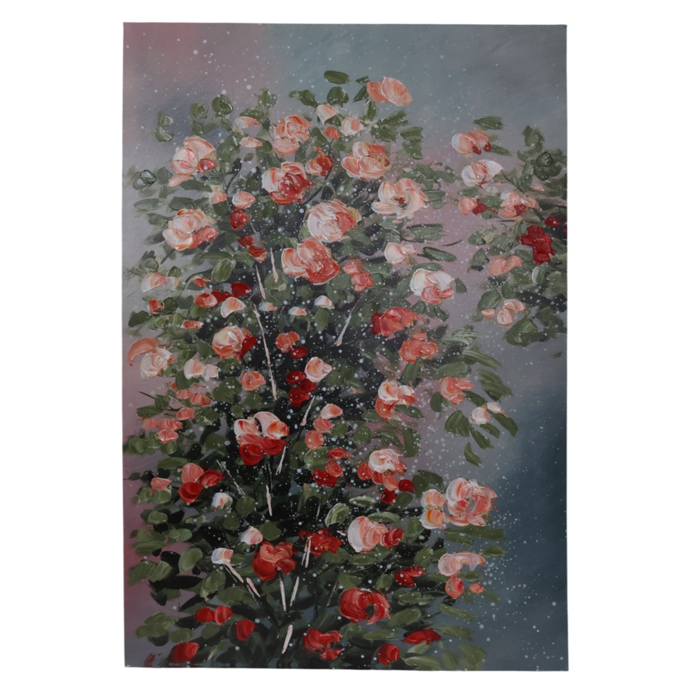 Decorate your walls with the painting "Flowers", a colorful work on canvas measuring 60x90 cm that brings the energy and beauty of nature to your space. This vibrant composition, rich in bright shades, captures the moment of flowers blooming, creating an atmosphere of freshness and vitality. With delicate brushstrokes and harmonious contrasts, this painting invites the viewer to stop and experience the emotions conveyed by each petal and shade, turning any environment into an oasis of colors and sensations.