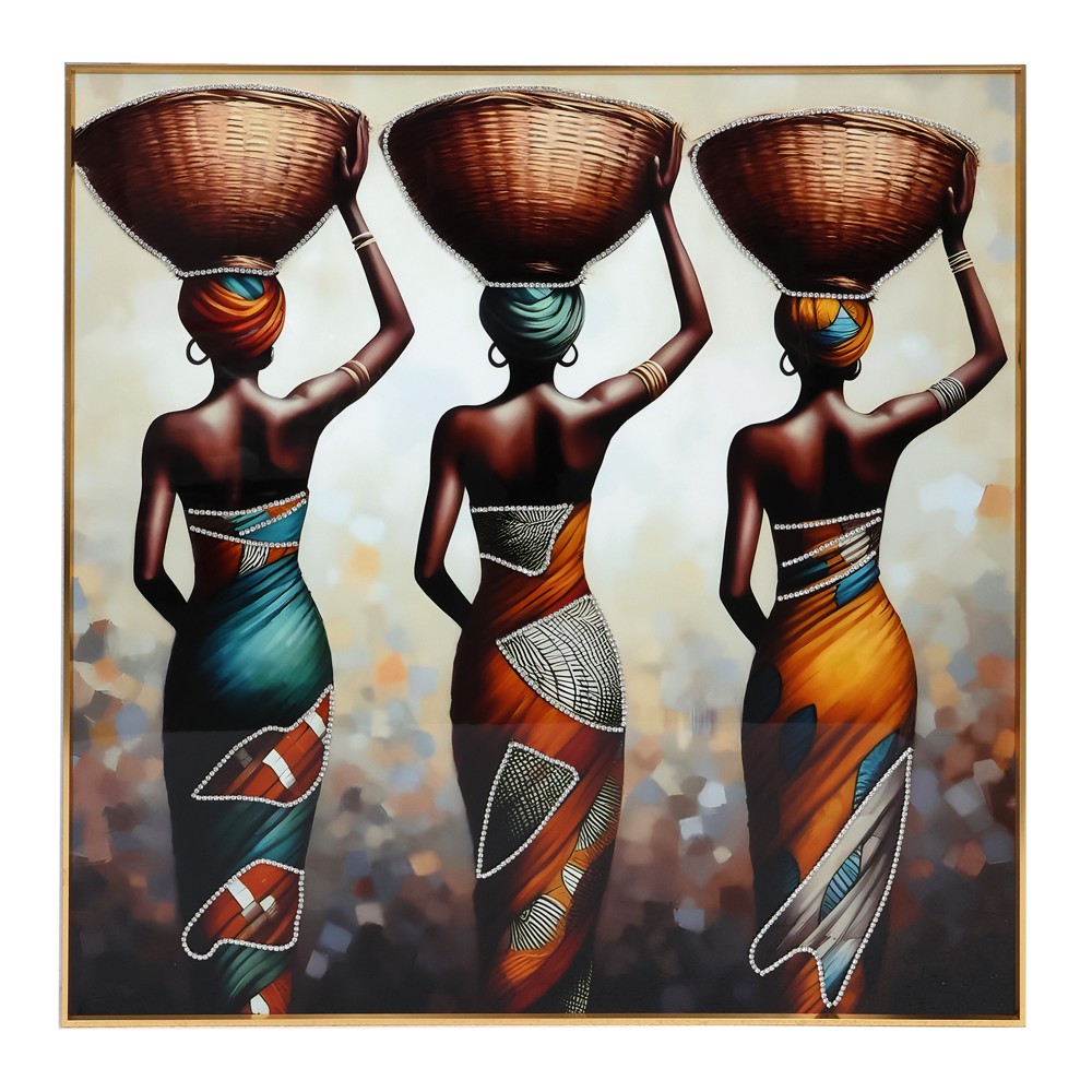 “Strength and Grace” is a multicolored painting on canvas measuring 80x80 cm, depicting three African women in a composition full of life and symbolism. Their figures express resilience, pride, and a natural elegance that radiates from within. The rich colors and traditional attire give the artwork a lively rhythm and connect it with African culture and identity. Every detail in the piece conveys strength and beauty, creating an inspiring atmosphere. “Strength and Grace” is a work that reflects women, culture, and the beauty of diversity, ideal for any space seeking color, emotion, and meaning.