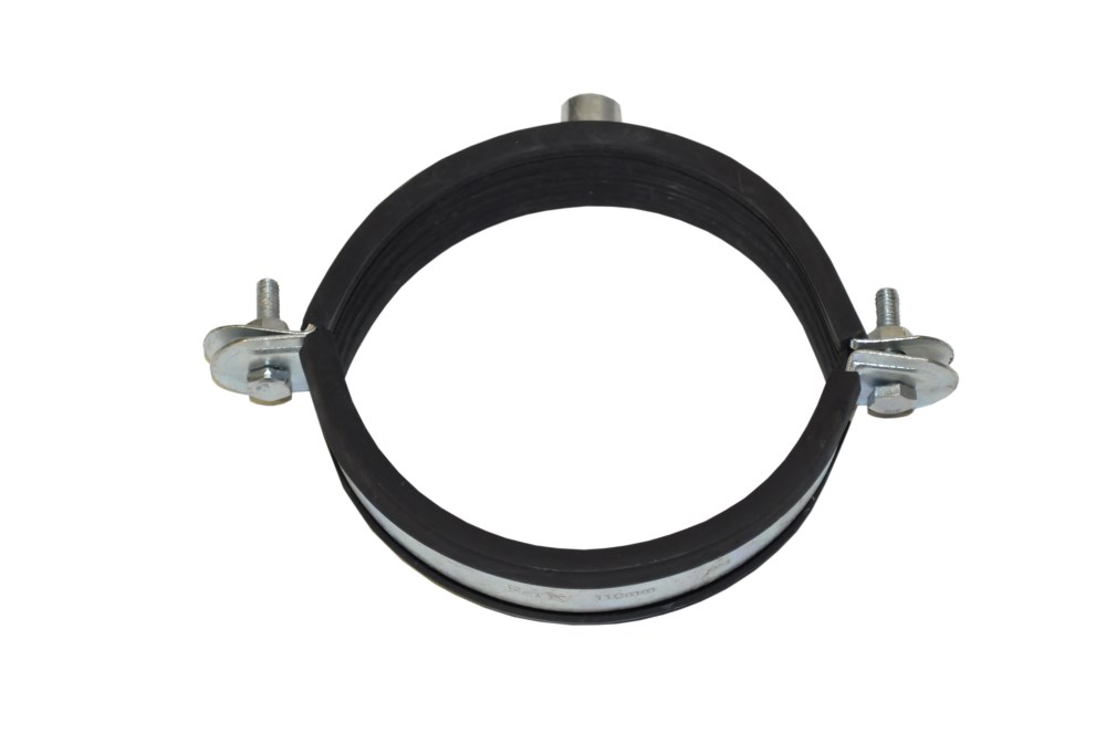 Pipe clamp with rubber, white zinc plated steel 110mm, Split-Ring. They are designed to suspend all types of pipe from beams, walls and more. Can be used in both horizontal and vertical applications. Galvanized finish for added durability
