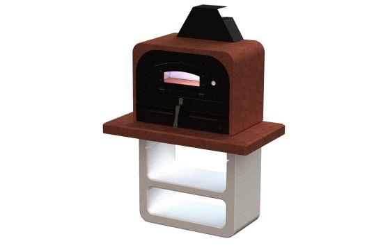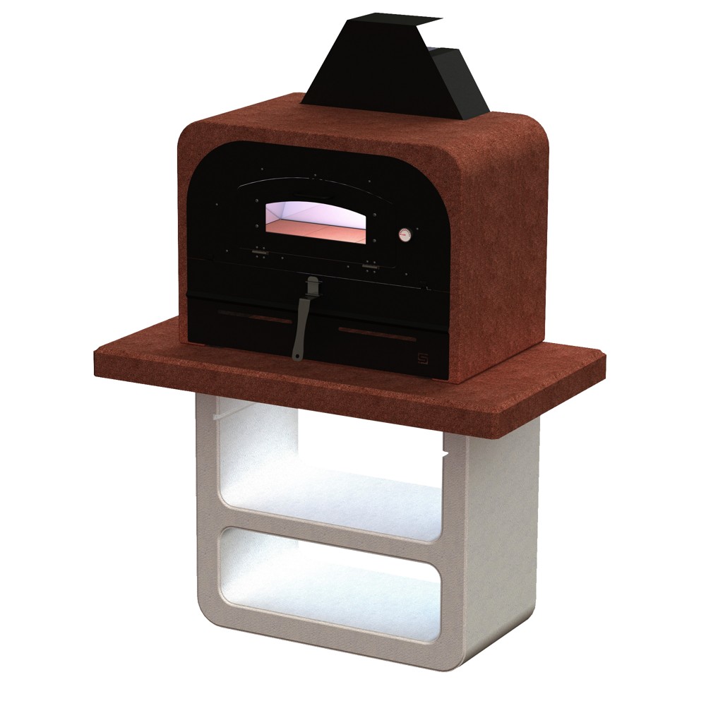 Oven made of concrete, stainless steel and enamelled steel. This oven model is made of concrete and hard enameled metal. The metal door has a ceramic glass look. The interior of the oven is made of refractory tiles. The oven is 49 centimeters wide and 35 centimeters deep inside. The smoke is discharged through the chimney of the metal design. It is used with wood or coal. It comes in a light concrete color, which can be painted white. The assembly is very easy. Assembly required.