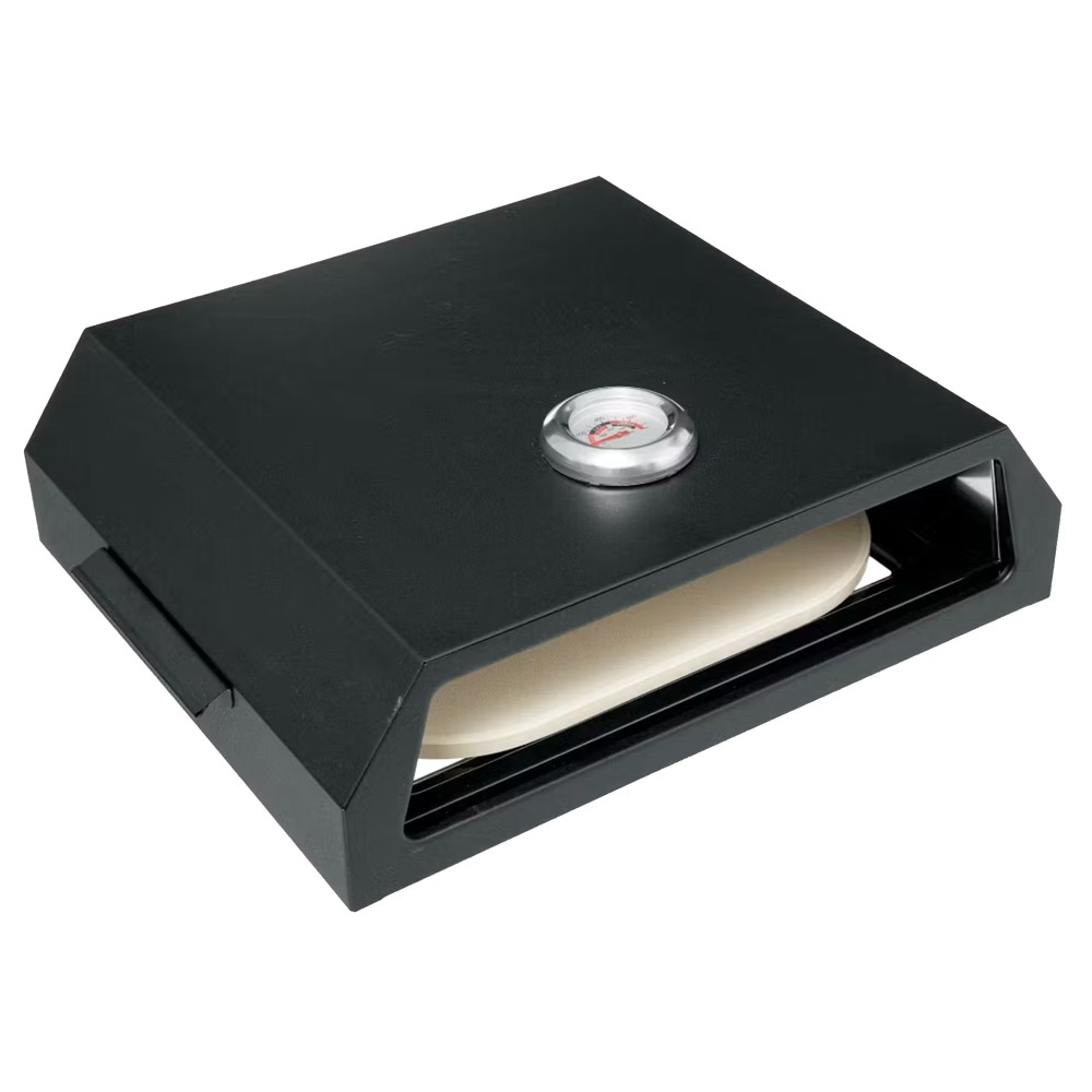 Pizza oven, made of ceramic and stainless steel material, in silver color. This oven is equipped with a ceramic pizza stone and a chrome tray for fast heating and you can cook fresh pizzas in minutes. The pizza oven is made of durable stainless steel material. The heat is retained and distributed evenly, ensuring that it cooks as well.