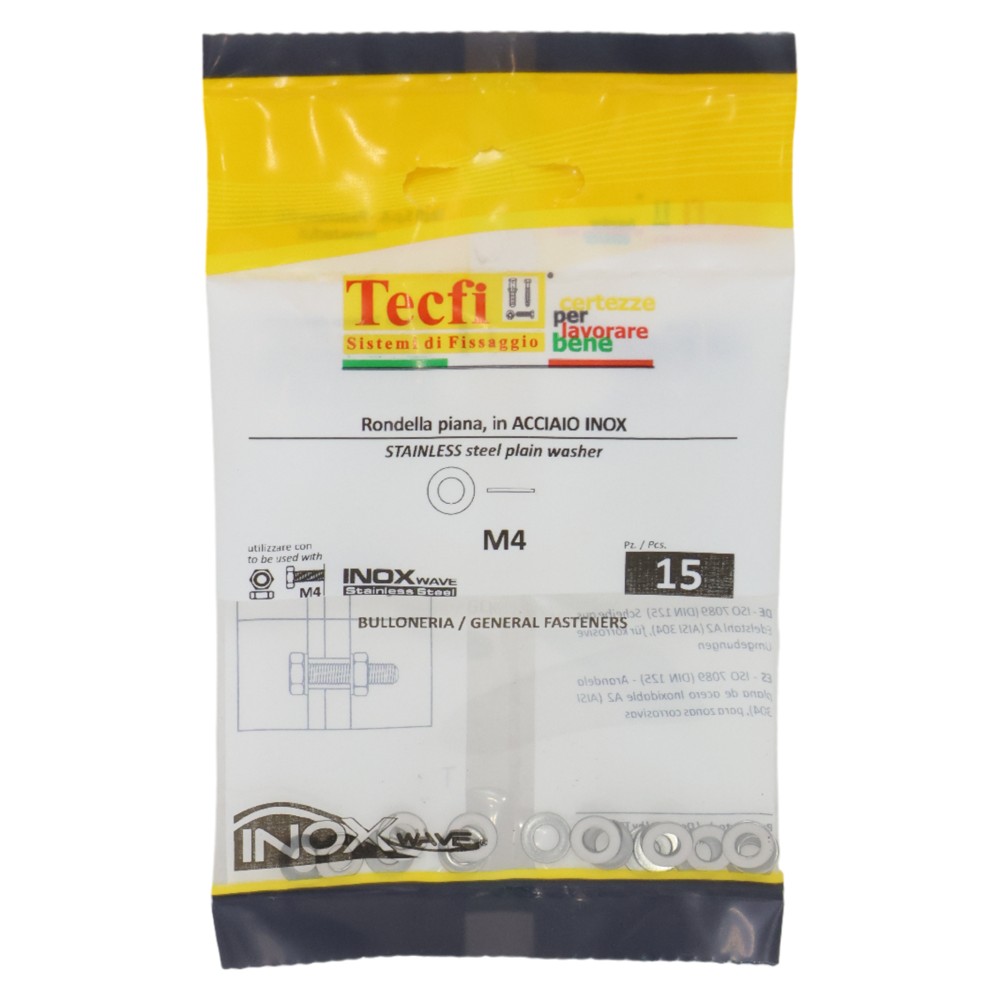 Plain washer normal series, A2 S/S, M4x9x0,8mm, Bag 15