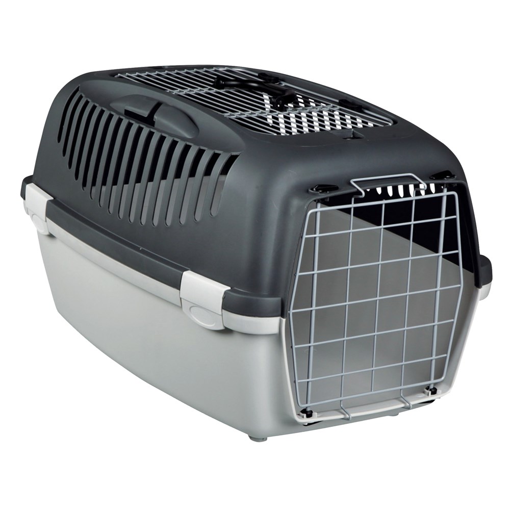 This conveyor is made of plastic and is equipped with a grille door on the front and a metal ring on the upper part, which also allows easy insertion of the animal from above. The box also has a carrying handle and a fixing device for the car seat belts. Ventilation shutters provide optimum air circulation even on longer transport routes. The box is suitable for transporting animals up to body weight of about 12 kg.